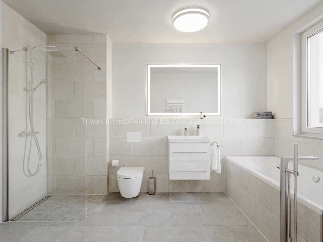 Die gesamte Wohnfläche ist mit einer Fußbodenheizung mit Trittschalldämmung ausgestattet. Stilvolles Eichenparkett in Naturton schafft eine warme und elegante Atmosphäre. In den Bädern finden sich exklusive Sanitärobjekte von Villeroy & Boch sowie geschmackvolle, hochwertige Fliesen.