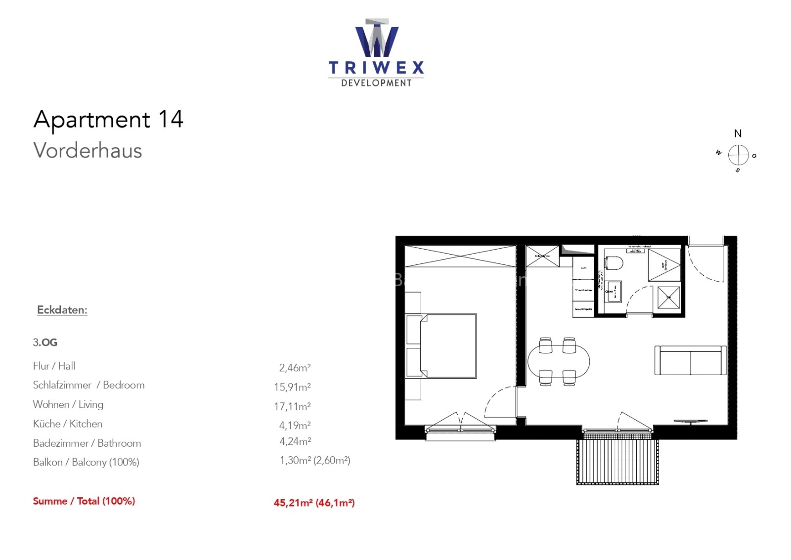Das exklusive Wohnprojekt umfasst insgesamt 33 hochwertige Wohneinheiten, darunter zwei großzügige Penthäuser sowie zwei attraktive Maisonettewohnungen im Gartenhaus. Die Wohnungen verteilen sich auf ein fünfgeschossiges Vorderhaus und ein zweigeschossiges Gartenhaus. Die Wohnflächen reichen von ca. 45 m² bis ca. 110 m² und bieten durchdachte Grundrisse mit 2 bis 4 Zimmern – ideal für Singles, Paare und kleine Familien.